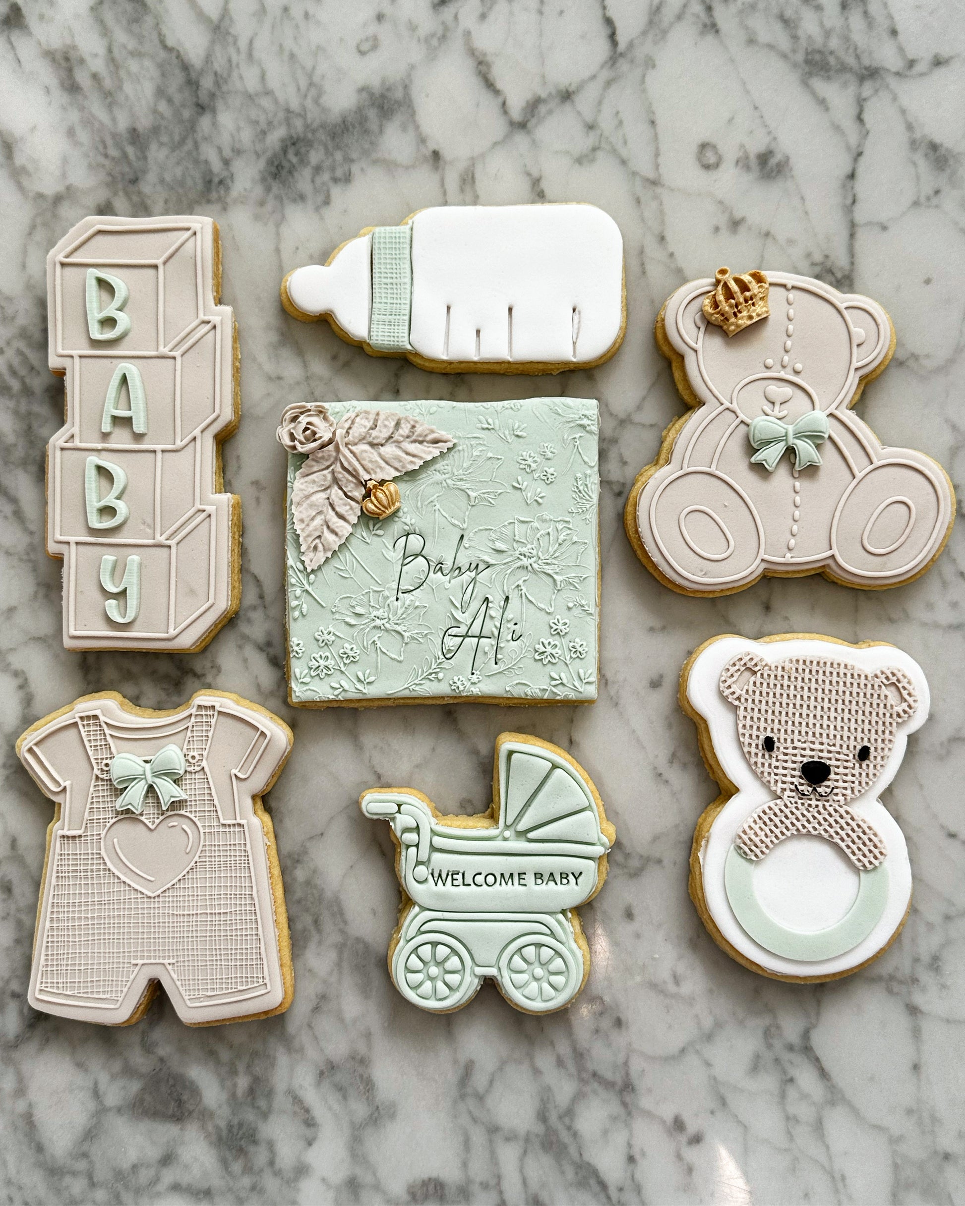 These cookies are beary cute! They can come personalised with bubba's name and boxed with ribbon and customised acrylic tag.